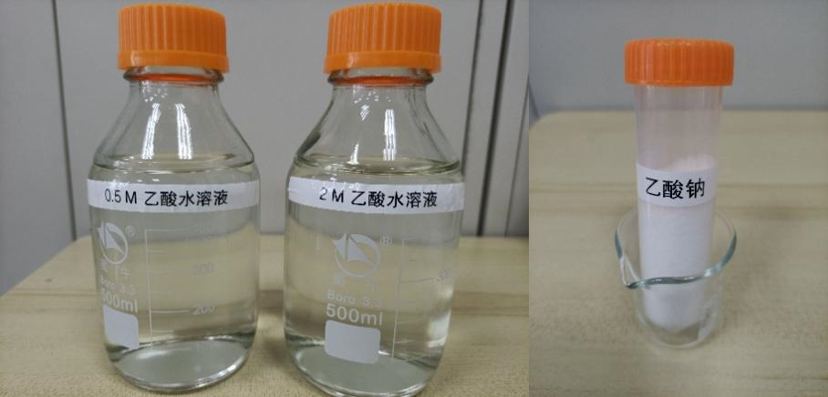 研究团队通过固态电解质反应器制备的乙酸水溶液及乙酸钠粉末