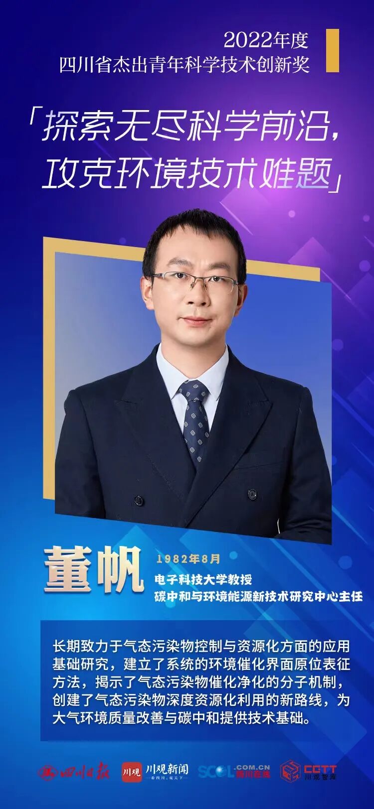 这是四川第二次评选“四川省杰出青年科学技术创新奖”,旨在奖励在科技基础研究和应用开发中取得重大成果的青年科技工作者,为他们开辟单独支持渠道,激发青年人才的创新活力。杰出青年科学技术创新奖候选者于提名当年1月1日应未满40周岁,且提名年度在四川工作。