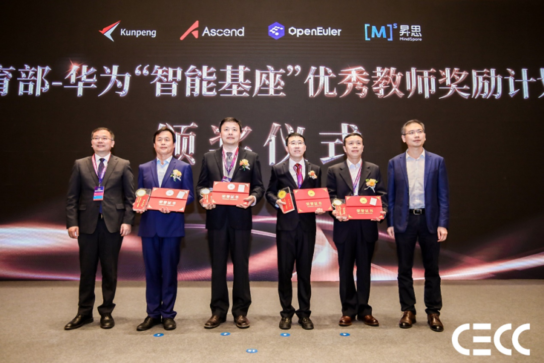 华为作为大会论坛共同主办单位承办了计算系统大会论坛,并在大会期间举行了教育部-华为“智能基座”优秀教师奖励计划颁奖和教育部-华为“智能基座”优秀教学资源奖励计划颁奖仪式。教育部-华为“智能基座”优秀教师奖励计划管委会委员、教育部高等学校大学计算机课程教学指导委员会主任委员、同济大学校长郑庆华教授,教育部高等学校计算机类专业教学指导委员会副主任委员、北京大学元宇宙技术研究所所长陈钟教授出席了颁奖仪式。