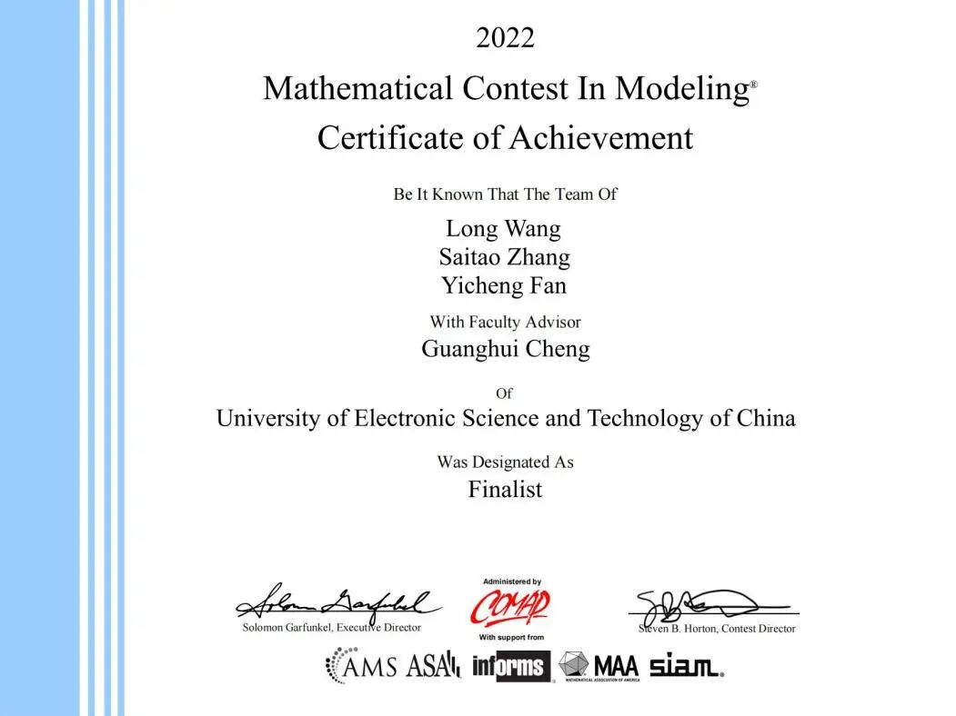 在2022年美国大学生数学建模竞赛中,张赛涛作为队长带领团队在3天内连续工作42个小时,经历了12个模型的推倒重来后才得以结题。最终该作品获得了特等奖提名,全球排名前1%。