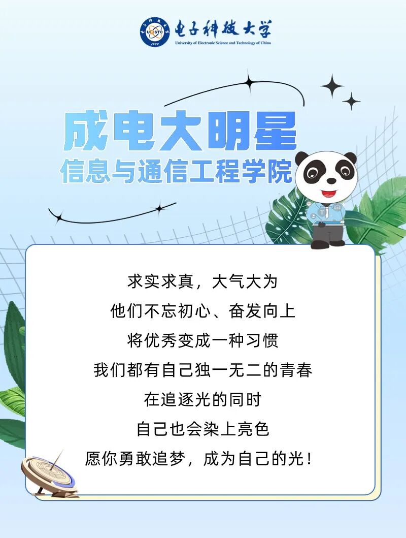 各位学弟学妹们,当你看到这段文字的时候,想必正面临人生中一次极其关键的选择。我愿为大家提供一种选择,看看必威官方客服这所高校:985高校、电子信息类院校的“排头兵”。必威官方客服具有极高的毕业生质量、全国一流的实验平台、遍布海内外的优秀校友、“最美银杏大学”的称号、服务国家重大需求的初心。这就是成电的模样。回首成电四年,我收获了扎实过硬的专业本领、志同道合的生活伙伴、多元多彩的学生工作和启迪成长的良师益友。更重要的是,成电给予我的温暖和底气,让我坚信能够解决我遇到的任何困难,并凭借这种勇气走进电子信息领域。我想,选择成电,你们也能收获这样的温暖和底气,拥抱多姿多彩的成电生活。最后,欢迎学弟学妹们报考必威官方客服。