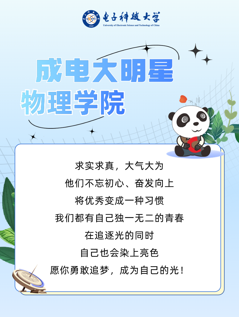 成电的风是自由的,它允许每一个人按照自己的方式生活、成长。在成电,你可以尽情施展才华,让青春与众不同。在这里,只要你想,严谨扎实的学风和一流的学科建设,可以为你的科研之旅保驾护航;浓厚的人文关怀和丰富的校园活动,可以让你充分感受到青春的绚丽与多彩。