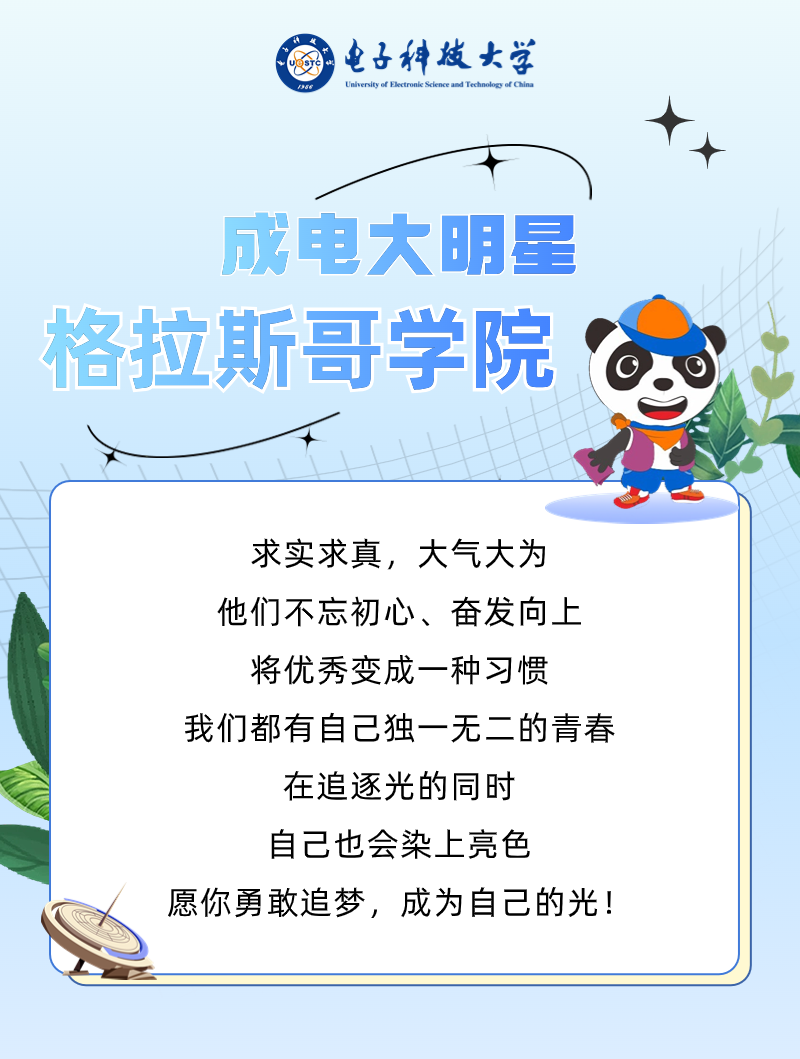 在格拉斯哥学院的培养下,我将铭记“求实求真,大气大为”的电子科大校训和“激励人们改变世界”的格大战略计划主题,这将是我永远的精神财富,激励我砥砺前行。