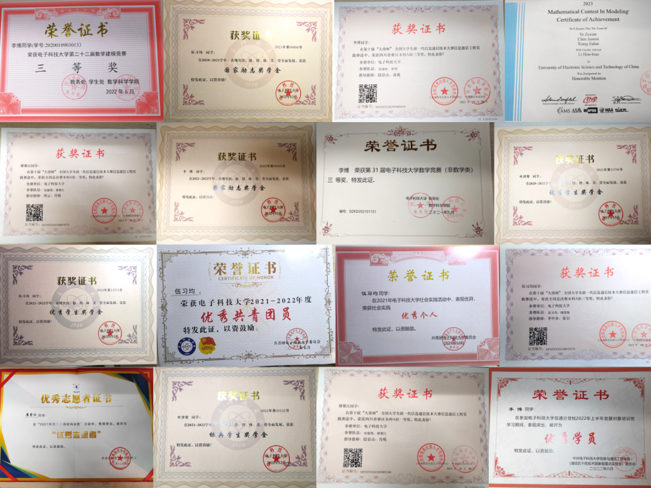 伍习均专业排名前30%,四年里获国家励志奖学金一次、校优秀学生奖学金三次。廖紫江是校优秀毕业生,获国家励志奖学金两次、校优秀学生奖学金三次,作为第三作者发表过一篇ACP国际会议论文。叶泽贤,专业成绩排名15%,获校优秀学生奖学金、全国大学生英语竞赛二等奖。
