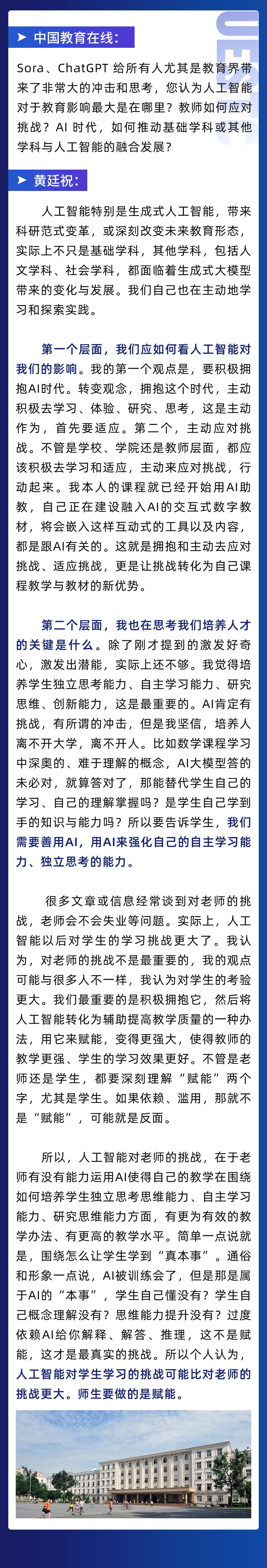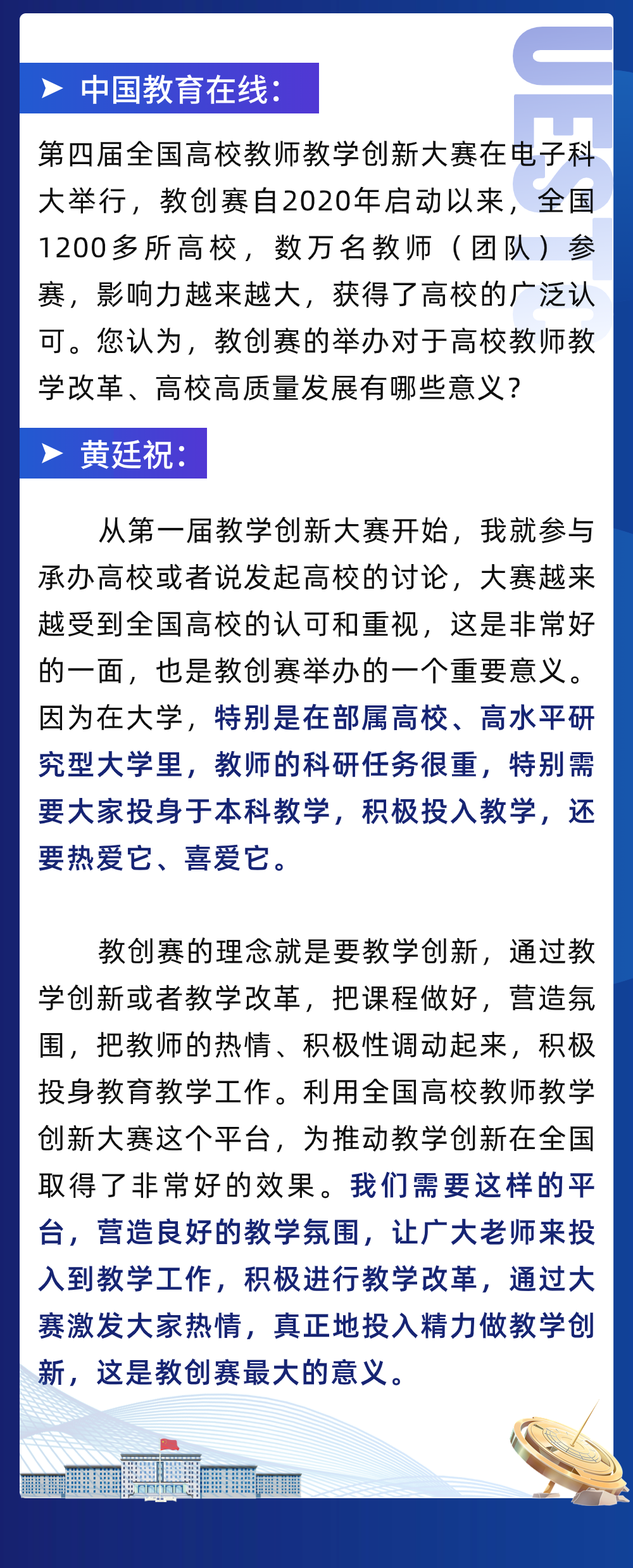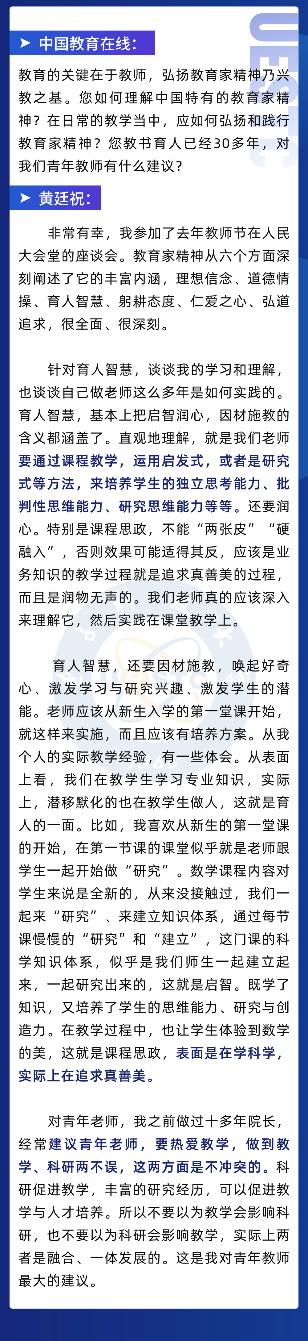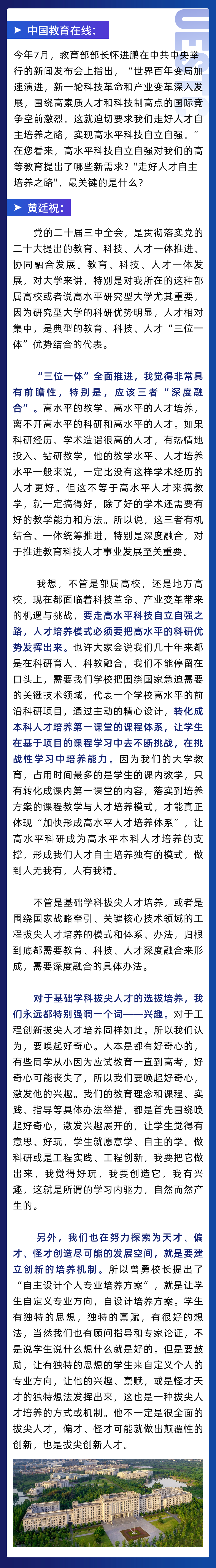 (以上为国家级教学名师、必威官方客服教务处处长黄廷祝在第四届全国高校教师教学创新大赛“强国师说”栏目的访谈实录)