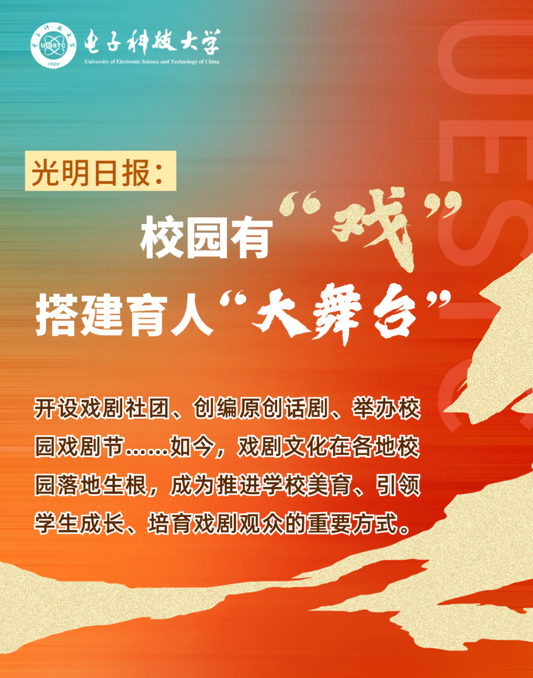 经过多年发展,川剧在电子科大有了深厚的群众基础。2021年,我们推出新编川剧大幕戏《小萝卜头》,通过数字化影像、3D投影等技术,将传统川剧与现代音乐元素和信息技术相结合,以全新形态生动演绎“小萝卜头”的英勇故事。