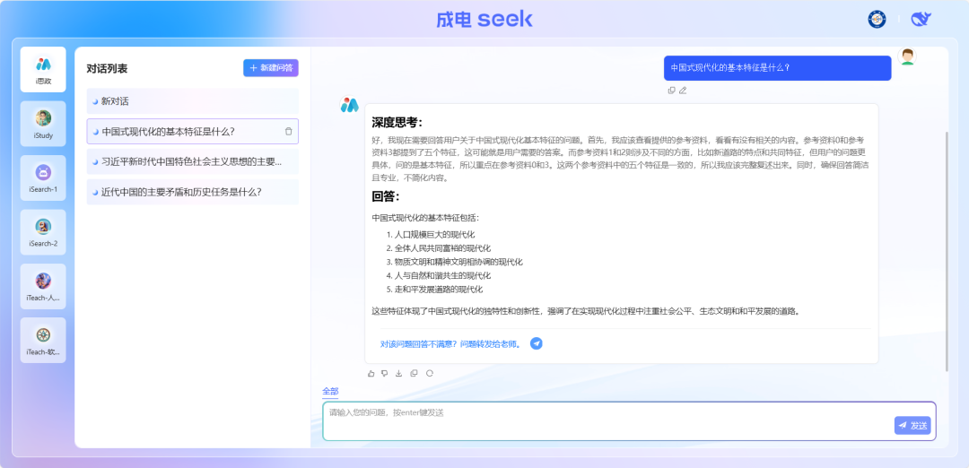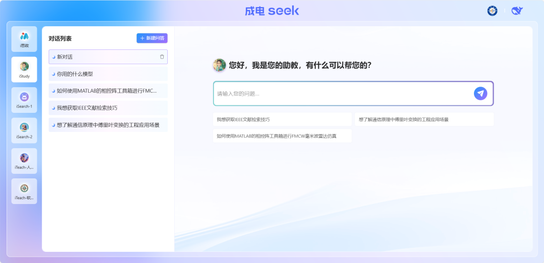 “成电Seek”是由必威官方客服、四川省人工智能学院、华为技术有限公司(成都)和成都索贝数码科技股份有限公司深度合作,依托学校高性能计算中心打造。目前还在基于昇腾910b搭建全栈国产化大模型平台,即将为全校师生提供更强算力,推动更多AI自主创新与应用落地,为全校师生带来智能化教学与科研的全新体验!
