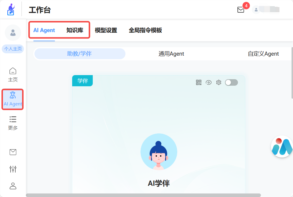 老师们可以在成电教学资源管理平台—工作台—AI Agent创建自己的专属智能体和知识库。