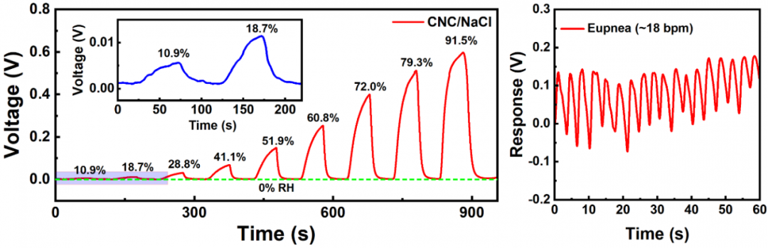 论文三:Self-powered electrochemical humidity sensor based on Cu/(cellulose nanocrystals/NaCl)/Zn structure for respiratory rate detection
