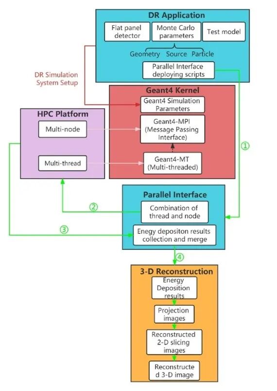 图一 基于Geant4的并行计算方法在数字X射线成像系统(DR)中的应用流程