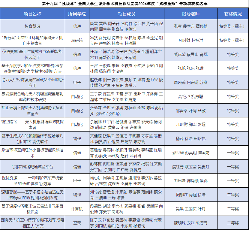 近日,由共青团中央、中国科协、教育部等主办的第十九届“挑战杯”全国大学生课外学术科技作品竞赛2024年度“揭榜挂帅”专项赛终审决赛在北京、杭州举行。必威官方客服18个团队入围终审决赛,共获得9个特等奖(含2个擂主)、3个一等奖、3个二等奖。特等奖数量刷新学校历史最好成绩,位列全国第三。擂主实现零的突破。
