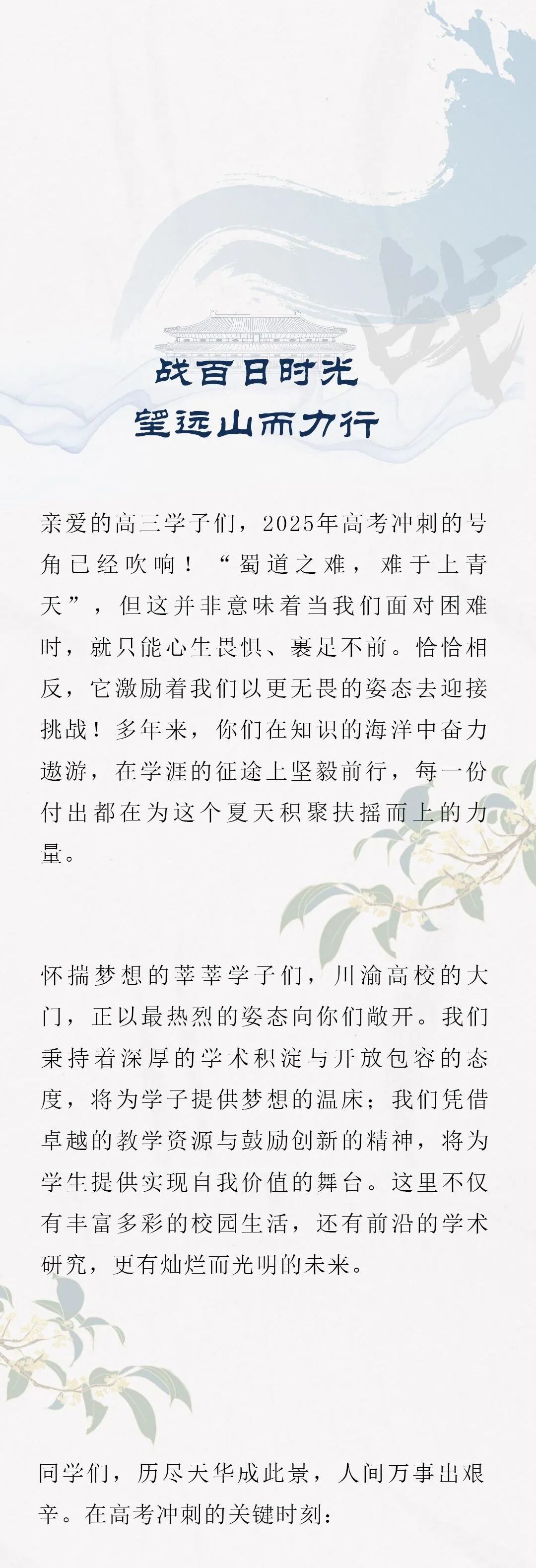 高考倒计时100天 | 向前望,梦启巴蜀,青年无惧万重山