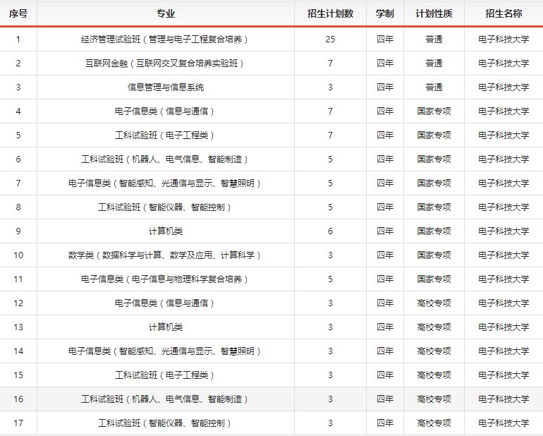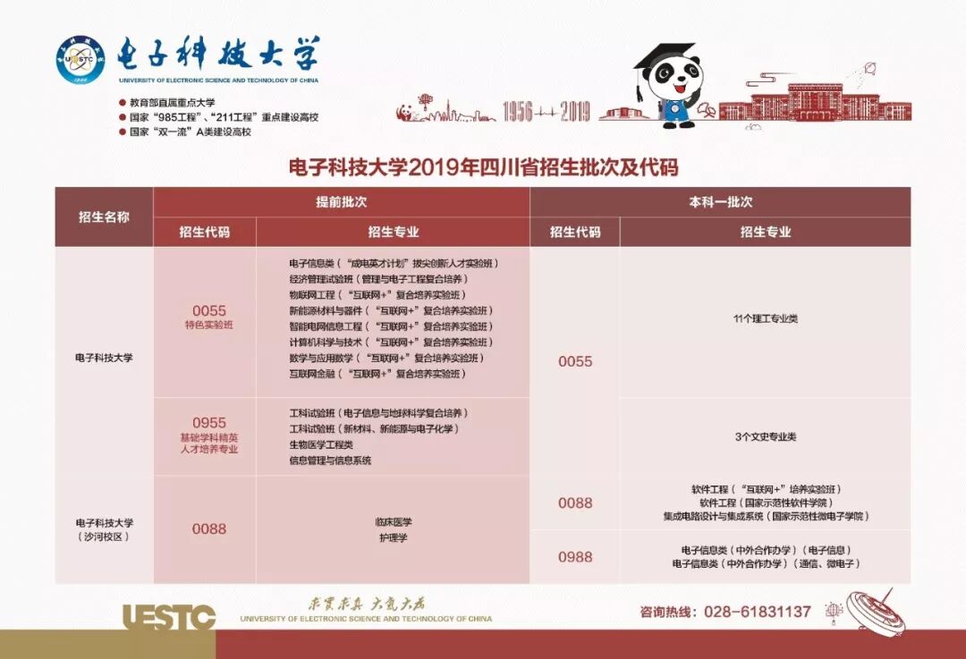 必威官方客服(特色实验班)在四川提前批次进行招生,招生专业包括电子信息类(成电英才计划拔尖创新人才实验班)、经济管理试验班(管理与电子工程复合培养)和“互联网+”复合培养实验班。